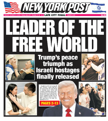 Sky News U.S. Correspondent Mark Stone: “The day was also an unquestionable and game-changing geopolitical achievement. Trump stopped the war, he stopped the killing, he forced Hamas to release all the hostages, he demanded Israel to free prisoners held without any judicial process, he enabled aid to be delivered to Gaza, and he committed everyone to a roadmap, of sorts, ahead. He did all that and more. He also made the Israel-Palestine conflict, which the world has ignored for decades, a cause that European and Middle Eastern nations are now committed to invest in. No one, it seems, can ignore Trump. Love him or loathe him, those are remarkable achievements.”